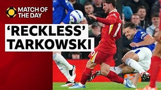 Before the deadlock was broken, there was another moment of controversy with Everton defender James Tarkowski incredibly fortunate to stay on the pitch.