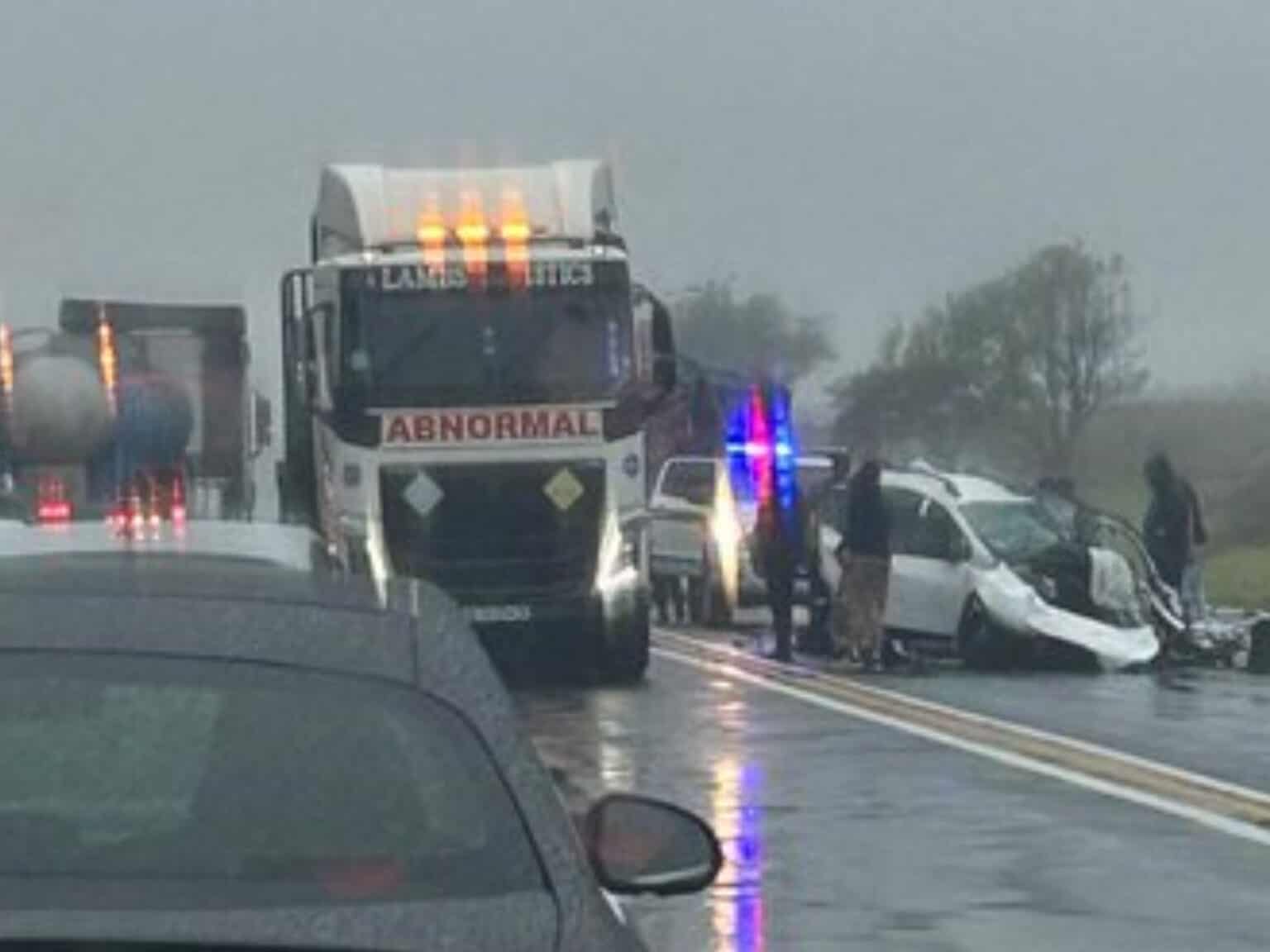 The northbound lane has been closed by officials as emergency responders carry out cleanup operations.